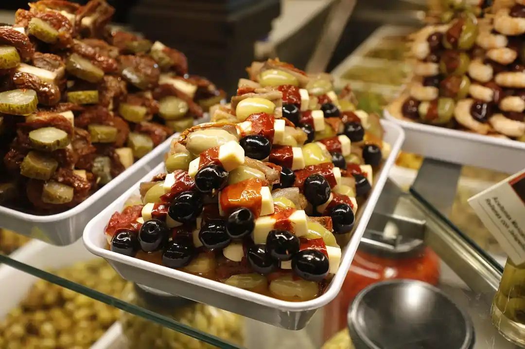 晚餐時間,絕對不能錯過就在主廣場旁的聖米格爾市場(Mercado de San Miguel)。這座擁有百年歷史的鑄鐵玻璃建築,本身就是一件藝術品。市場內,更是美食愛好者的天堂!各式各樣的 Tapas 攤位琳瑯滿目,從堆積如山的伊比利火腿、晶瑩剔透的醃橄欖、鮮美的海鮮串,到精緻的乳酪和甜點,每一樣都讓人垂涎三尺。在這裡,你不需要正襟危坐,只需要拿著一杯酒,隨意穿梭在人群中,看到喜歡的就點一份,這正是體驗西班牙飲食文化最棒的方式。我個人大推這裡的炸魷魚圈三明治(Bocadillo de Calamares),簡單卻無比美味!