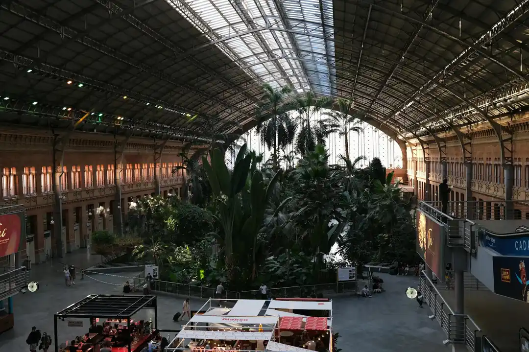 特別值得一提的是馬德里的阿tocha車站,它絕對是我見過最美的火車站之一。舊站體被改造成一個巨大的室內熱帶花園,種植了數千株植物,陽光從玻璃穹頂灑下,你可以在綠意盎然的環境中喝杯咖啡,甚至還能看到池子裡悠游的烏龜。在這裡等車,本身就是一個美好的景點。
